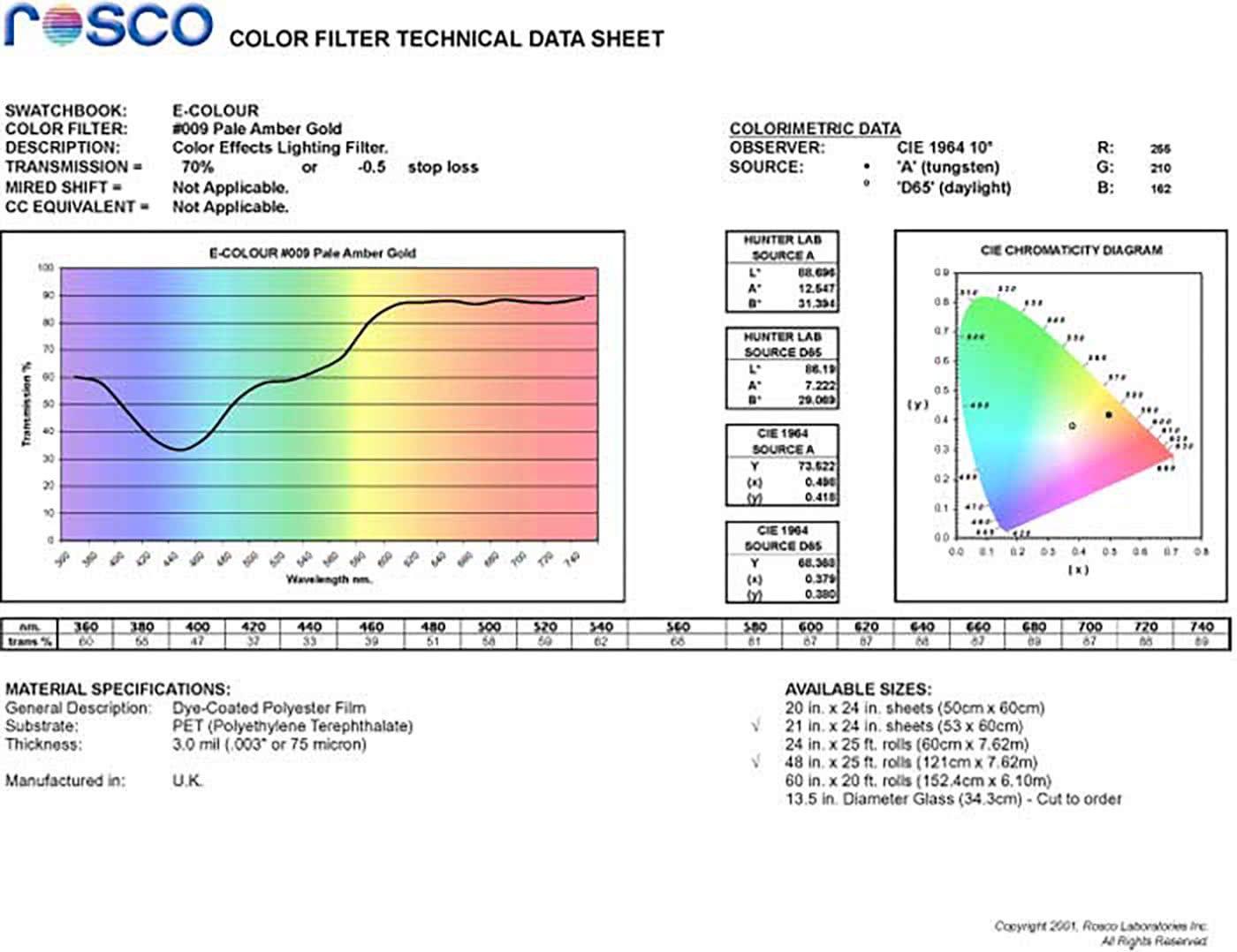 E009 Rosco E Colour - Pale Amber Gold