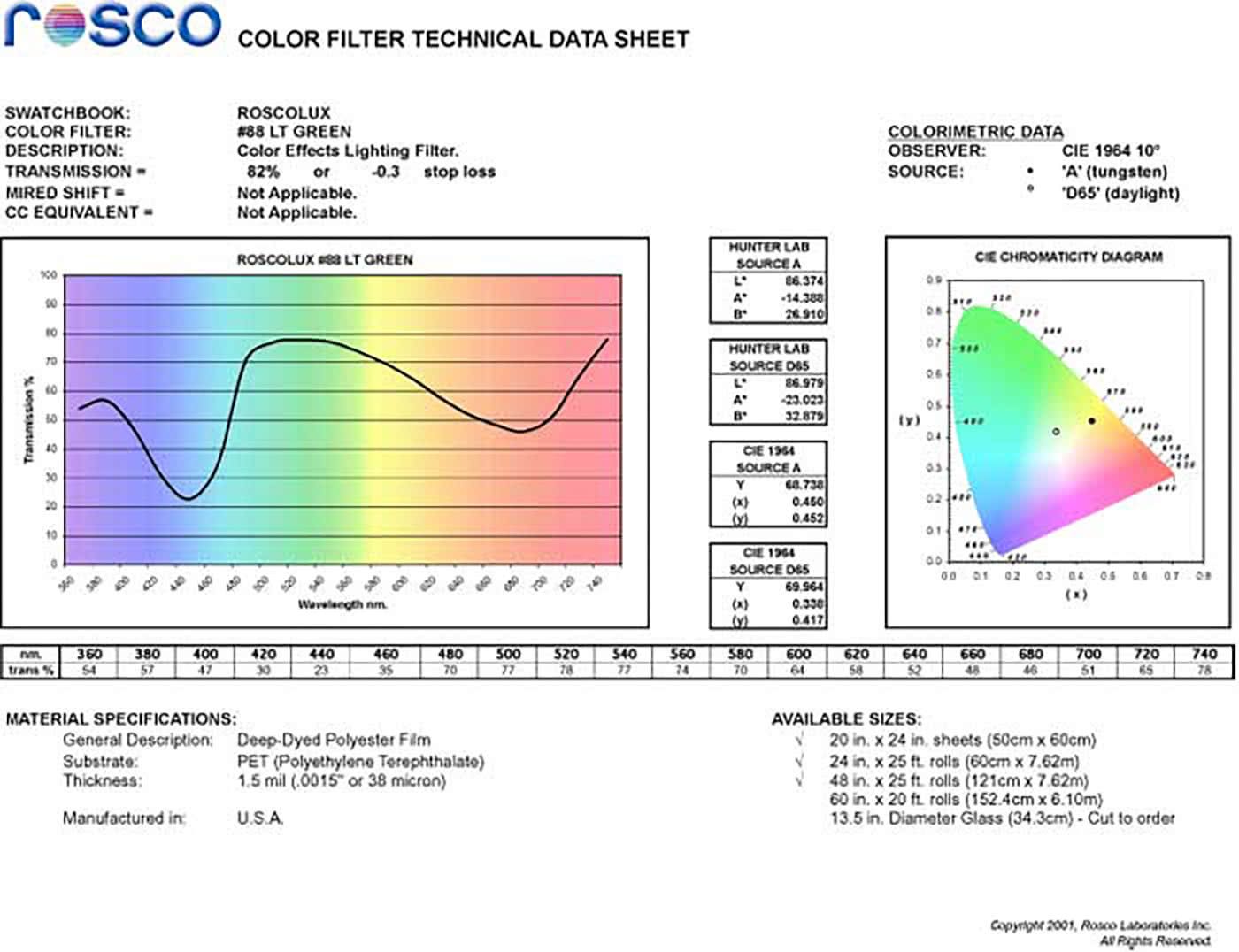 Supergel / Rosclux is regarded as one of the most widely used color filter ranges in the world. It is comprised of more than 75 colors and 15 diffusions that are engineered using Rosco’s exclusive body-colored, polycarbonate extrusion process to offer the longest possible life under hot theatrical and film/TV light fixtures. This unique manufacturing process also provides Supergel with unsurpassed heat-resistance, color-stability and flame-retardancy.